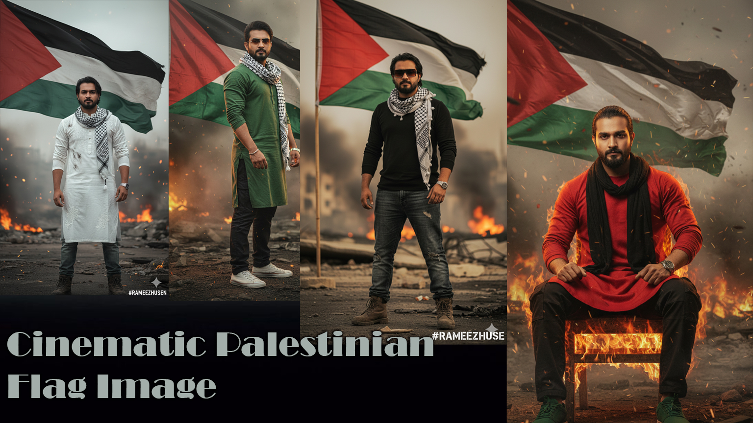 Cinematic Palestinian Flag Image open Google Gemini Add an Image on nano banana Copy Prompt…