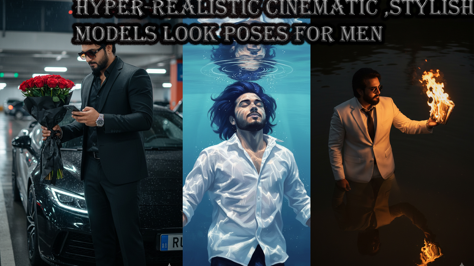 Hyper-realistic cinematic ,Stylish models look poses for men