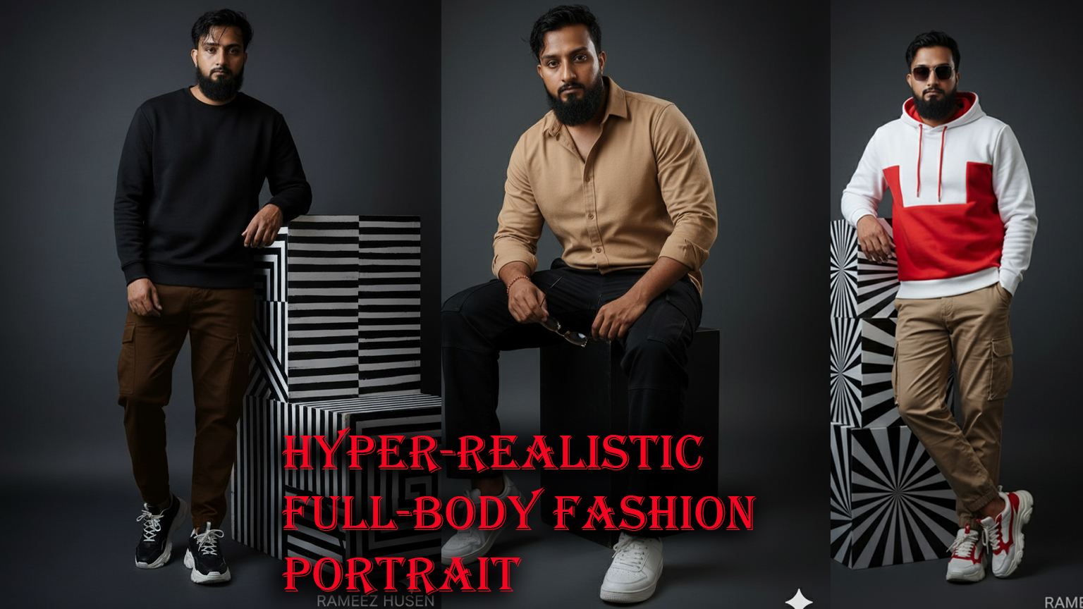 Hyper-realistic full-body fashion portrait