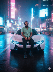 BMW Cyberpunk Scene With Man